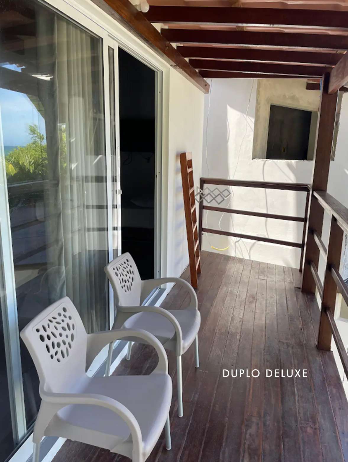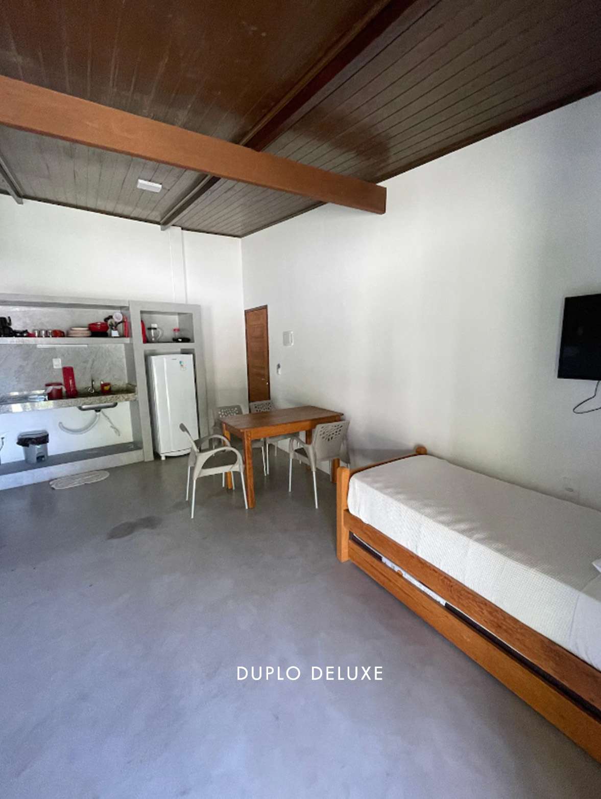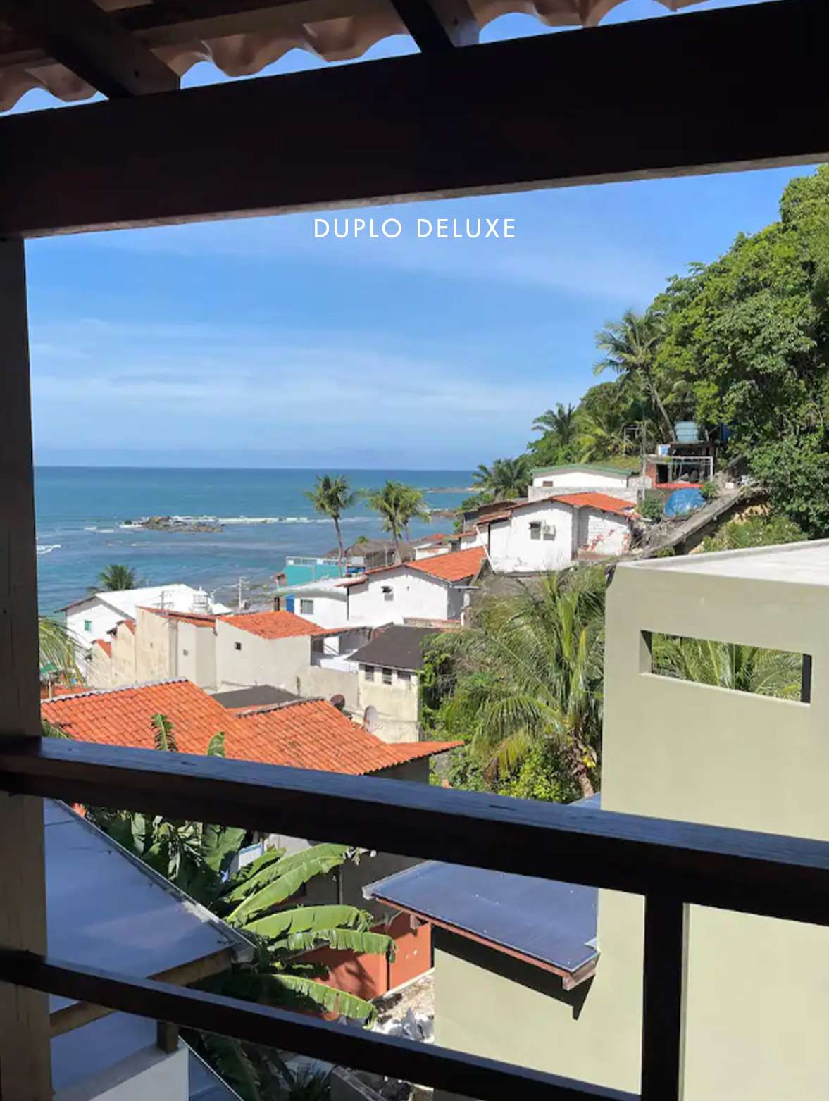 O apartamento conta também com banheiro privativo espaçoso e moderno, além de uma varanda com vista deslumbrante para o mar, onde é possível relaxar e apreciar a paisagem. Há ainda uma cozinha compacta equipada com geladeira, pia e itens básicos, além de uma mesa de jantar para reunir todos em um só lugar.