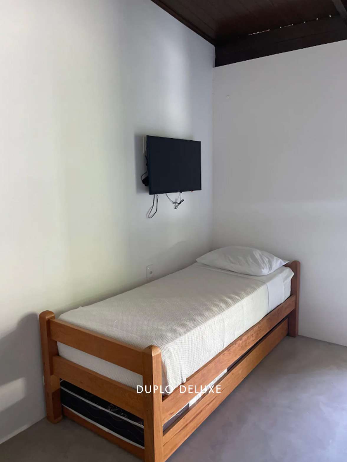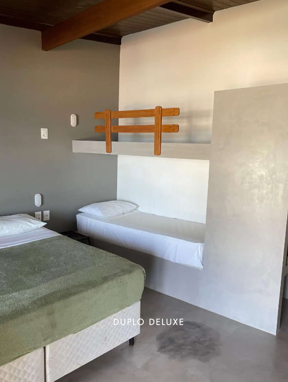 Este apartamento é perfeito para quem busca conforto e praticidade bem pertinho do mar. Em um espaço único e aconchegante, ele acomoda até 6 pessoas com uma cama de casal, uma cama de solteiro suspensa tipo beliche, uma cama de solteiro comum e outra de solteiro com auxiliar. O ambiente é climatizado com ar-condicionado, garantindo noites tranquilas e agradáveis.